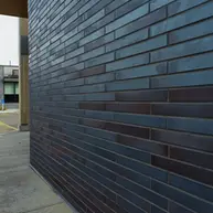 Obsidian Shadow thin brick from King Klinker America is a favorite among architects. Its silvery and graphite reflections create a mysterious, untamed charm.